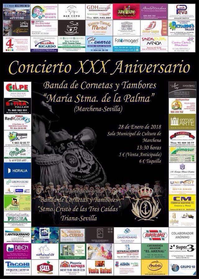 Cartel Anunciador del Concierto de nuestro 30 Aniversario con la participación de la Banda de Cornetas y Tambores "Stmo Cristo de las Tres Caídas" (Triana-Sevilla)
