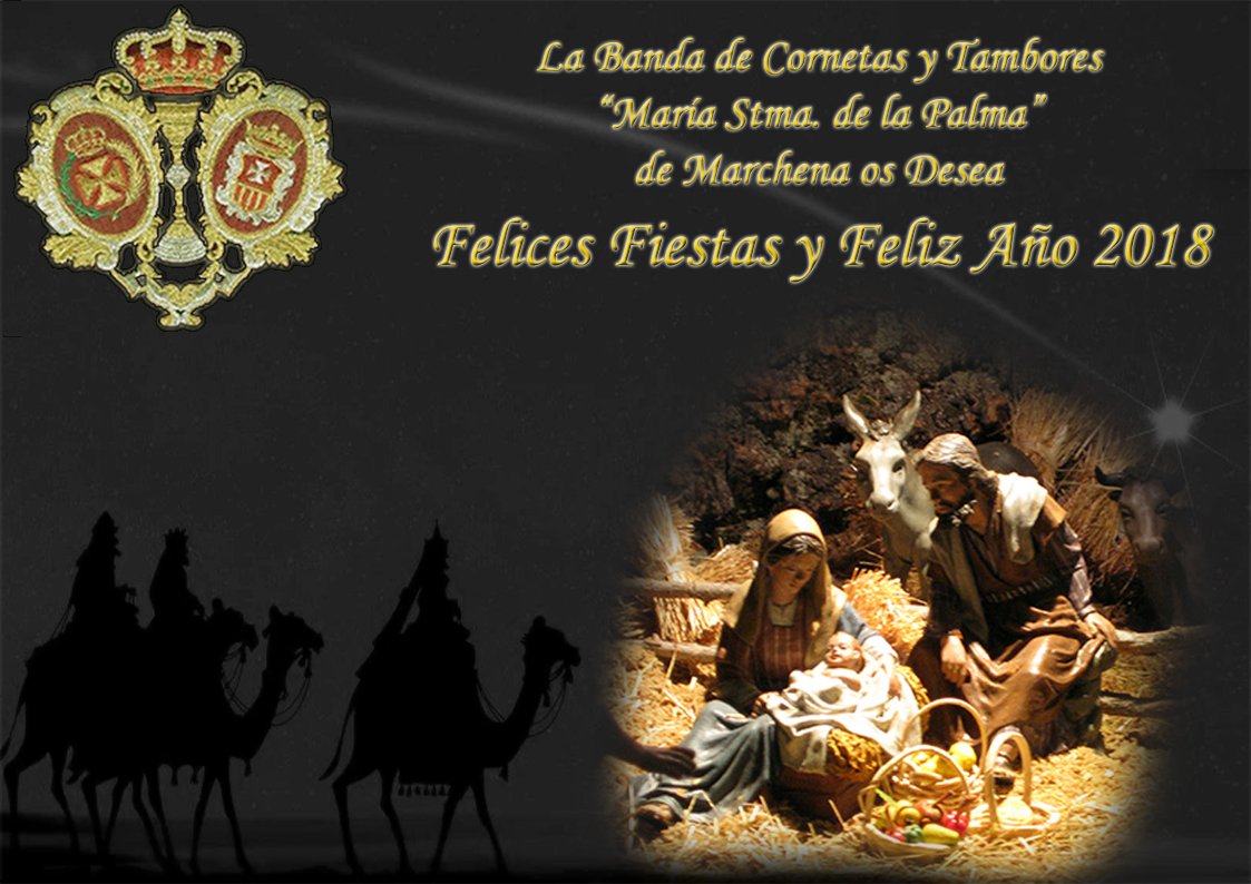 Desde la Banda de Cornetas y Tambores "María Stma. de la Palma" de Marchena os deseamos Felices Fiestas y Feliz Año 2018.